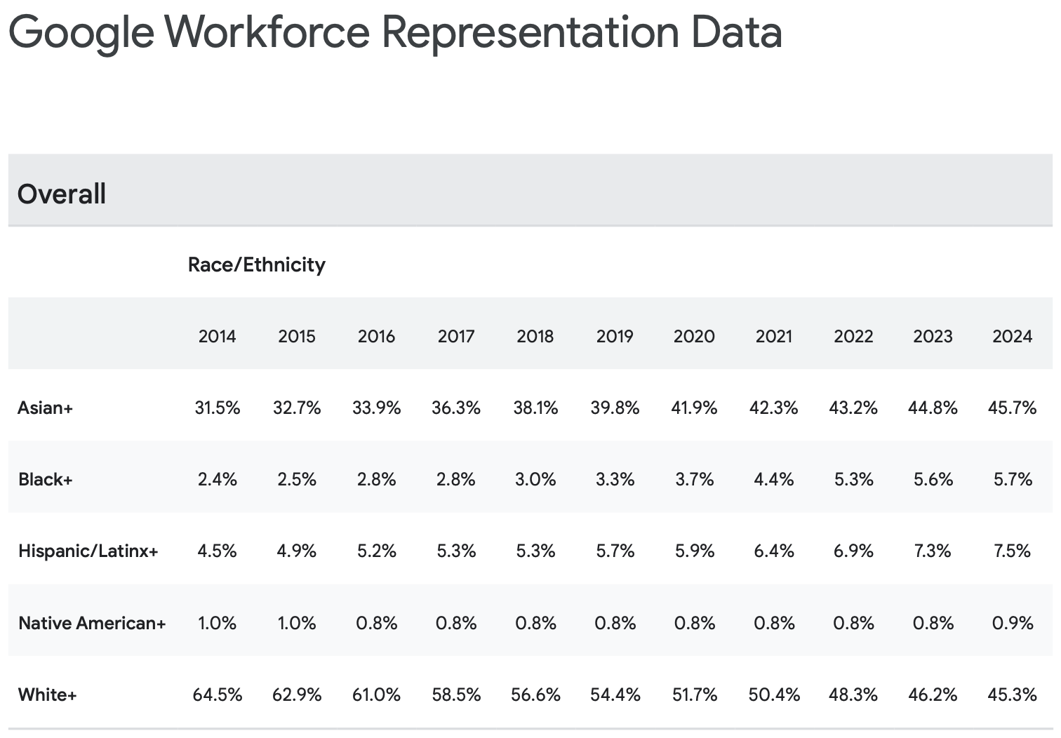 The kind of diversity that the original Google studies claimed was good was never actually realized as it pertained to white Americans. Indeed, individuals across the industry, and within California generally, are overwhelmingly aligned with left-wing politics which are enforced with potential job loss.